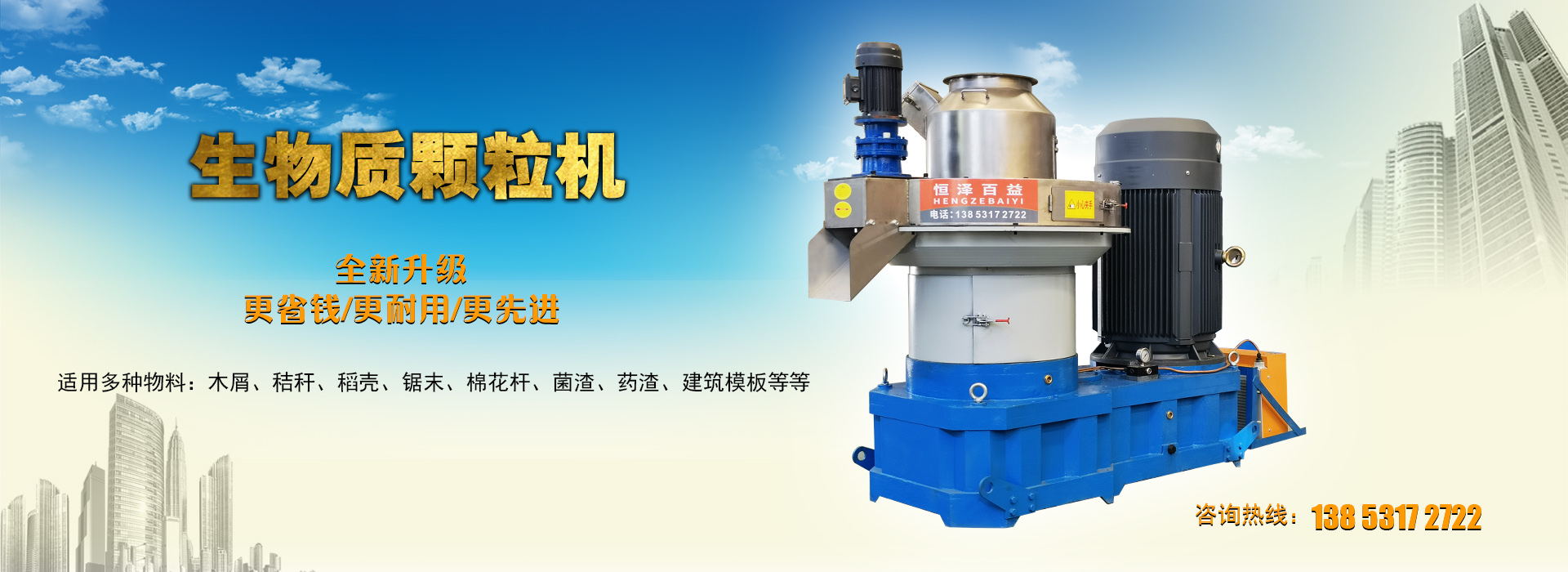 恒澤百益生產的生物質顆粒機是以桉木、松木、樺木、楊木、果木及農作物秸桿、竹屑粉碎為鋸末糠狀加工成生物質燃料的生產型機械。新…